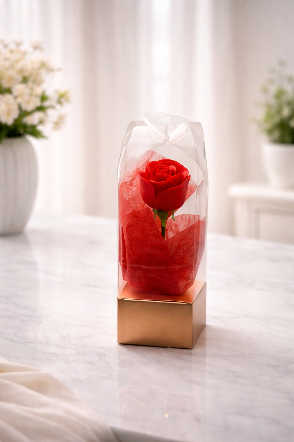 Tartalom: 1 szál 3D nyomtatott vörös rózsa díszcsomagolásban (20cm magas)