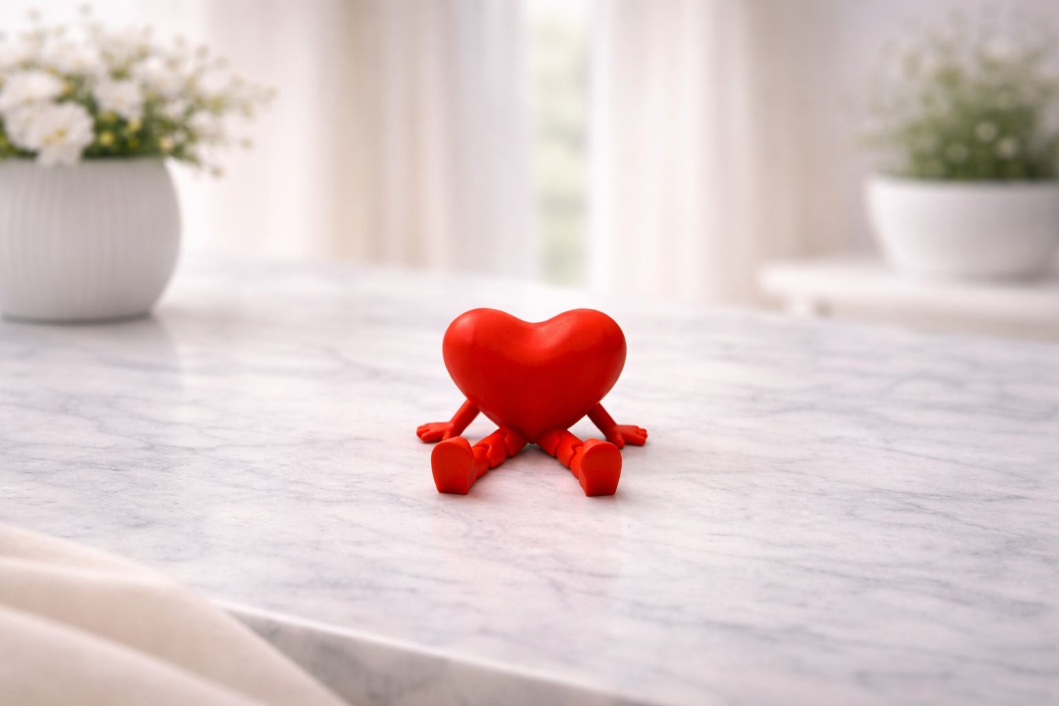Ez az aranyos ülő szív figura garantáltan mosolyt csal az arcokra: egy piros, „pihenő” szívecske apró lábakkal és kezekkel, ami tökéletesen mutat polcon, íróasztalon vagy éjjeliszekrényen. Kicsi, kedves, és pont annyira romantikus, amennyire kell – ideális ajándék „csak úgy” is.