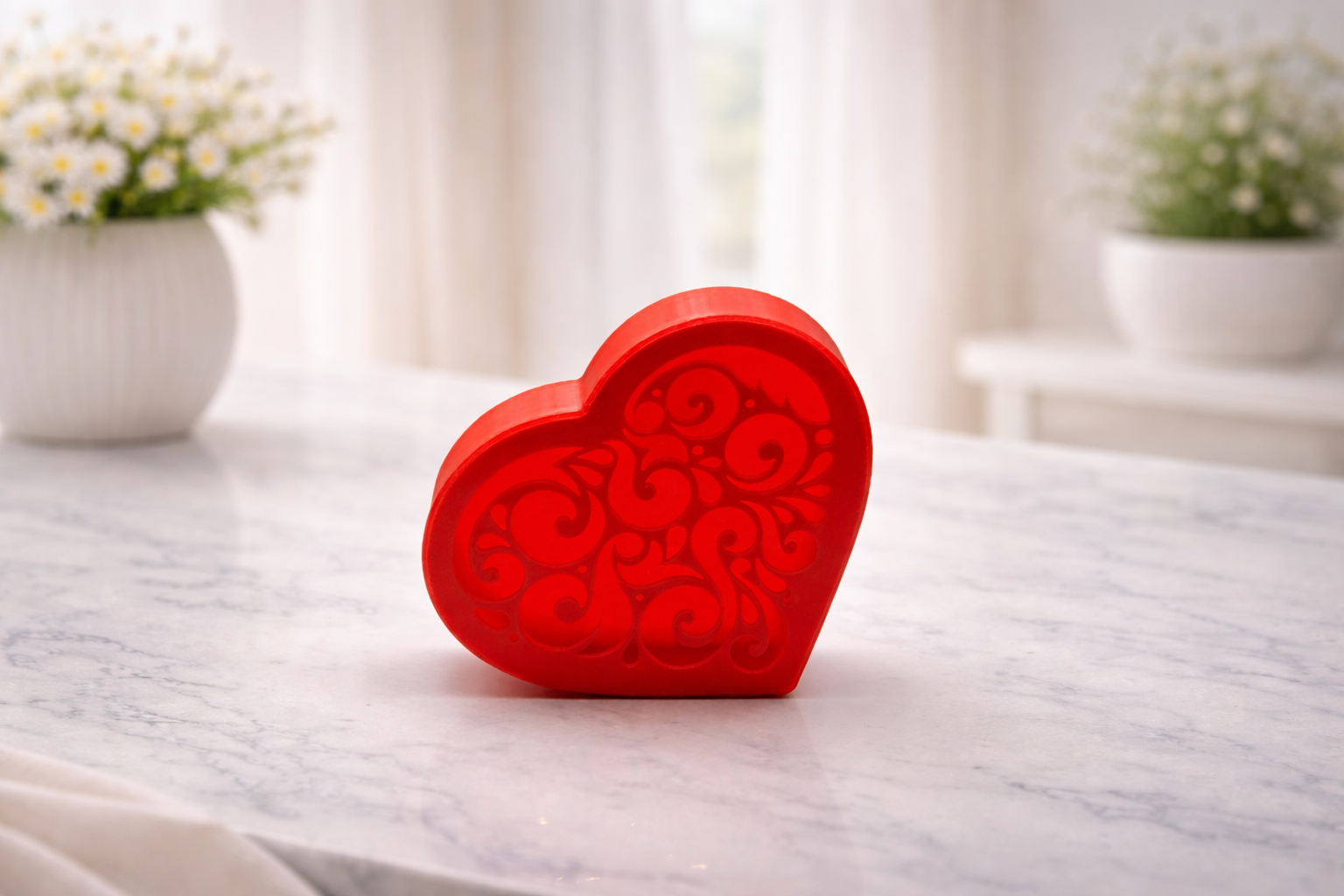 Ez a különleges szív alakú tárolódoboz nemcsak praktikus, hanem igazi dísz is: a fedél finom, ornamentikus mintája elegáns megjelenést ad, így tökéletes választás, ha valami igazán „extra” apró ajándékot keresel. Ideális ékszerek, kis meglepetések vagy emlékek tárolására – és már önmagában is ajándéknak hat.