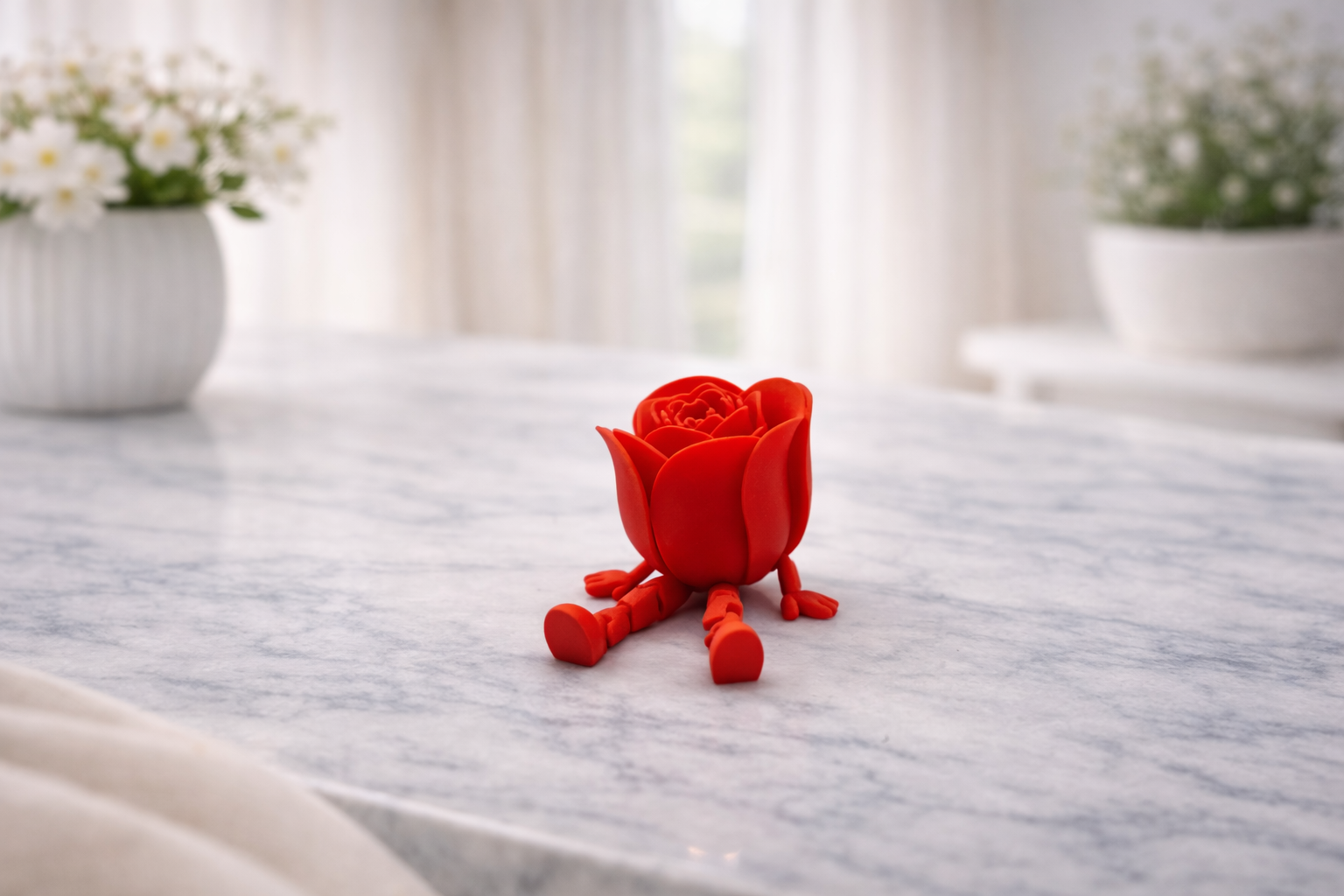 Egy rózsa, ami nem hervad el – és még mosolyt is csal az arcokra. Ez az ülő rózsa figura különleges, játékos dekor: a részletesen kidolgozott piros rózsafejhez kis lábak és kezek társulnak, mintha épp kényelmesen leült volna pihenni. Tökéletes apró ajándék és bájos dísz polcra, íróasztalra vagy éjjeliszekrényre.